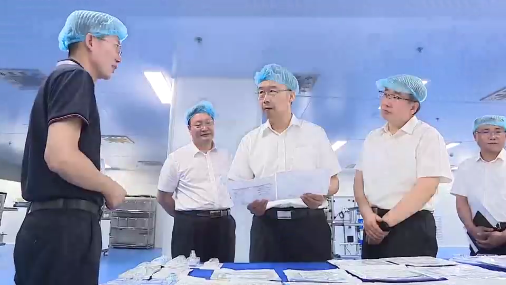 集團董事長陳志剛對王市長一行蒞臨指導(dǎo)表示熱烈歡迎,向各級領(lǐng)導(dǎo)匯報了公司建設(shè)及生產(chǎn)運營情況。隨后,陳志剛董事長陪同王現(xiàn)坤市長一行深入萬級潔凈車間及智能化生產(chǎn)車間,實地觀摩全進口智能生產(chǎn)線的高效運轉(zhuǎn),近距離感受行業(yè)領(lǐng)先的潔凈生產(chǎn)環(huán)境與全流程質(zhì)量管控體系。