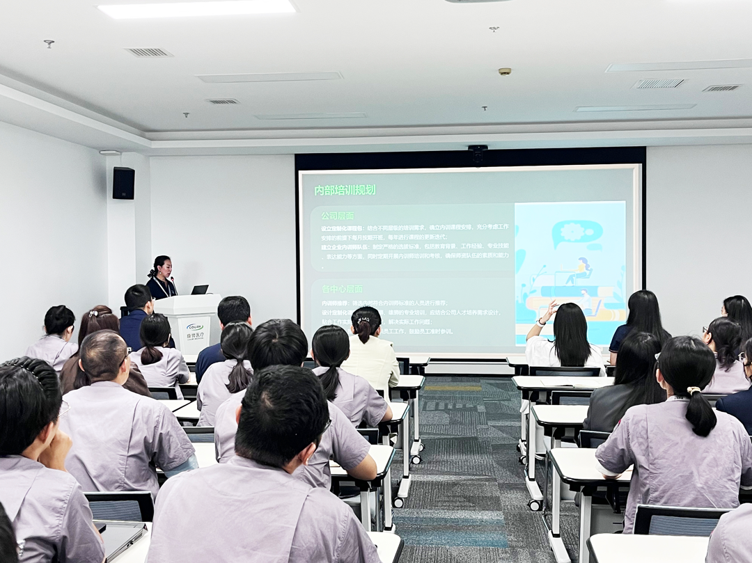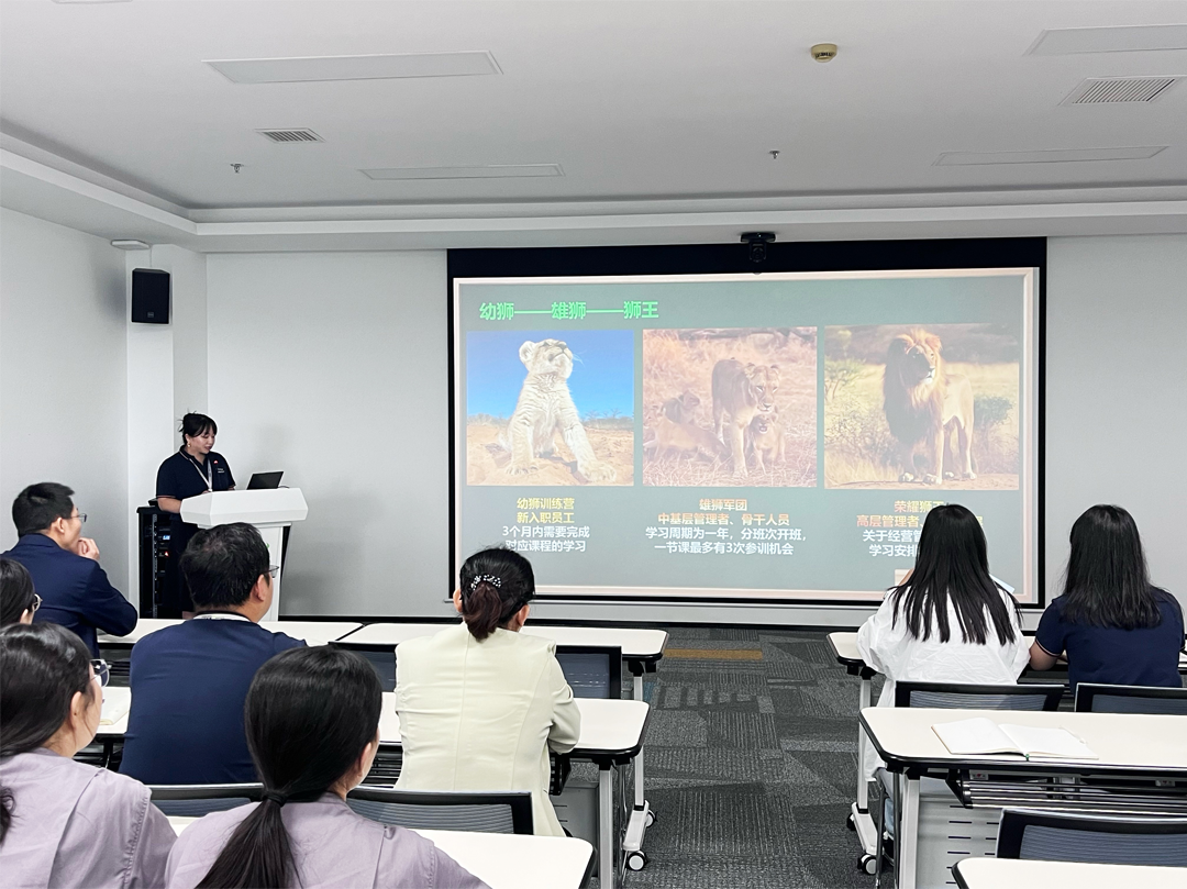 此外,康譽學院還新增兩個版塊,研學獅進階營和學步獅訓練營。人力資源總監(jiān)王利華以及人力資源部的同事通過生動地講解,為大家展示了公司的培訓體系、課程規(guī)劃以及培養(yǎng)機制等內容。