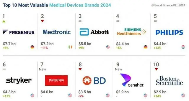 2024全球醫(yī)療設(shè)備品牌價(jià)值25強(qiáng)榜單揭曉